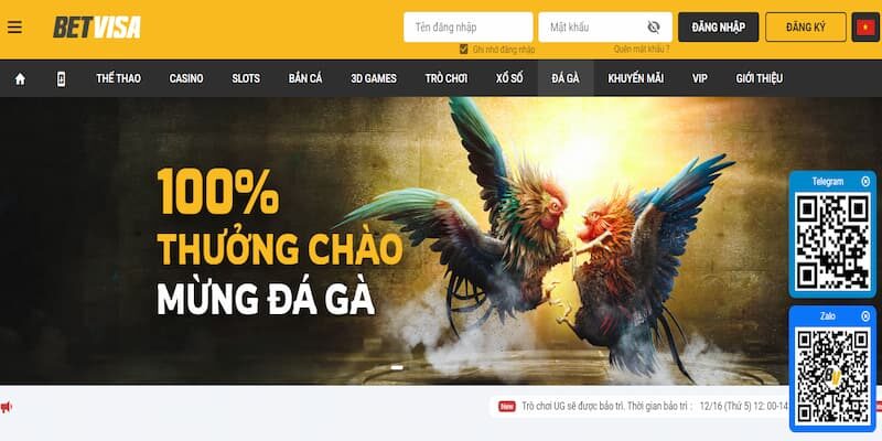 Bấm chọn sảnh đá gà tại nhà cái betvisa để bắt đầu đặt cược