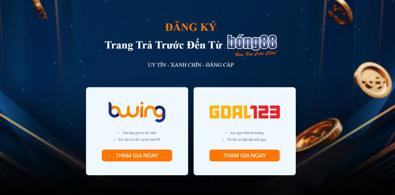 Để bắt đầu hành trình cá cược bóng đá trực tuyến hấp dẫn tại Bóng 88, người chơi cần thực hiện quy trình tạo tài khoản mới. Sau khi truy cập trang chủ Bóng 88 và nhấn nút “Tham gia ngay”, bạn sẽ được chuyển hướng đến một trong các trang đối tác trả trước của Bóng 88 như Goal123 hoặc Bwing để hoàn tất việc tạo tài khoản.
