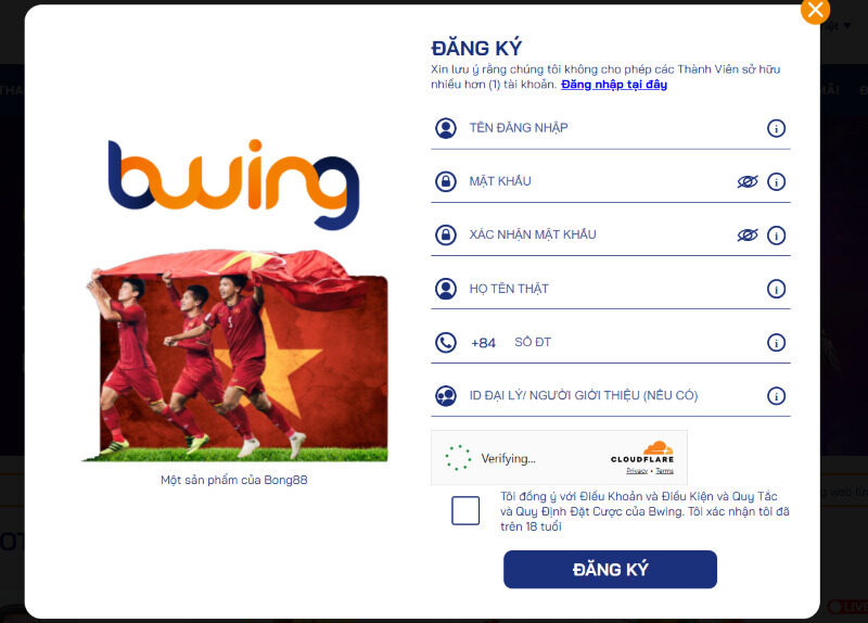 Tương tự như nền tảng cá cược bóng đá Goal123 xanh chín, nếu bạn được chuyển hướng đến trang đăng ký của Bwing từ Bóng 88, các bước thực hiện như sau: